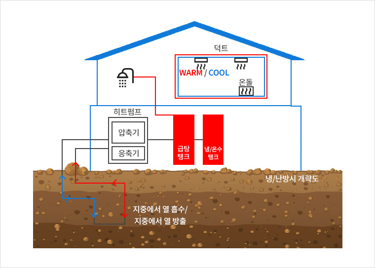 사계절 일정한 땅속 온도를 에너지로 이용하는 시스템으로